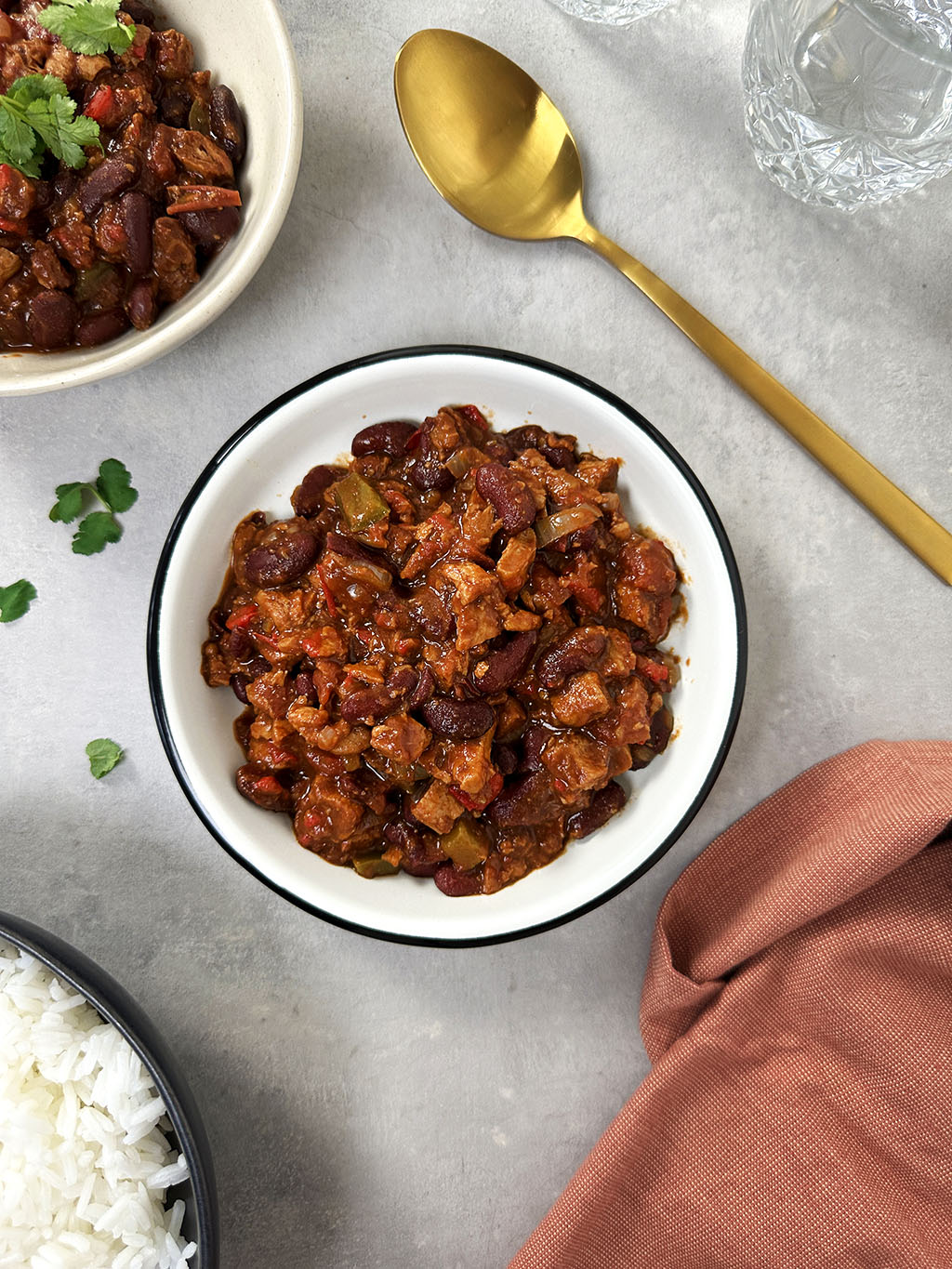 Wir haben einige Anfragen nach Rezepten für den Slow Cooker (Schongarer) erhalten, insbesondere nach Chili sin Carne. Deshalb teilen wir endlich dieses köstliche Rezept. Dieses vegane Chili sin Carne ist nicht nur herrlich scharf und sättigend, sondern auch komplett soja- und glutenfrei. Ideal für eine gesunde Mahlzeit, die jedem schmeckt. Egal, ob du einen Slow Cooker verwendest oder es schnell in einem Topf auf dem Herd zubereitest, dieses Rezept ist ein garantierter Hit, den du immer wieder zubereiten möchtest.