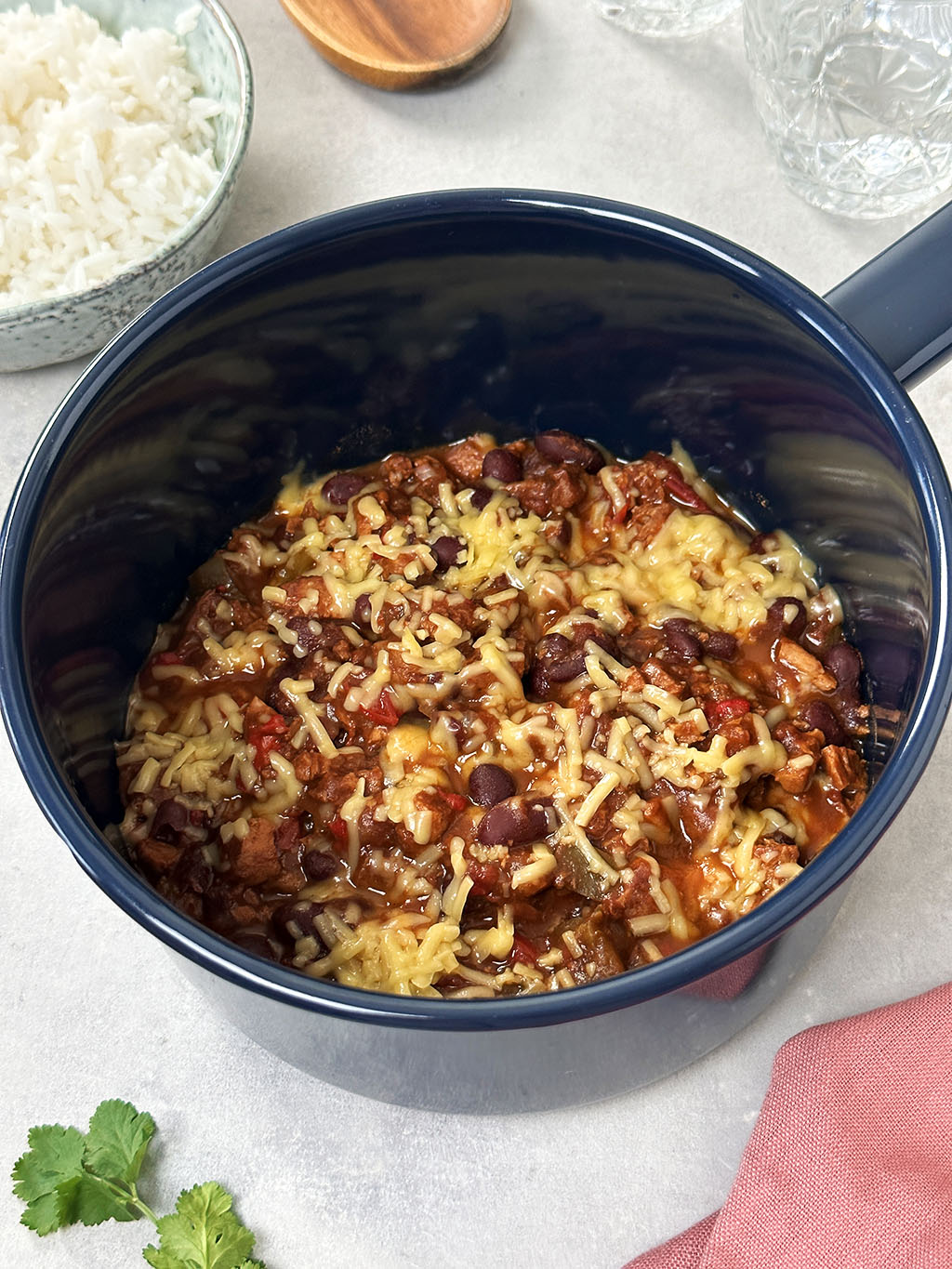 Chili sin Carne ist ein ideales Gericht zum Vorkochen. Und das Beste daran? Am nächsten Tag schmeckt es sogar noch besser!