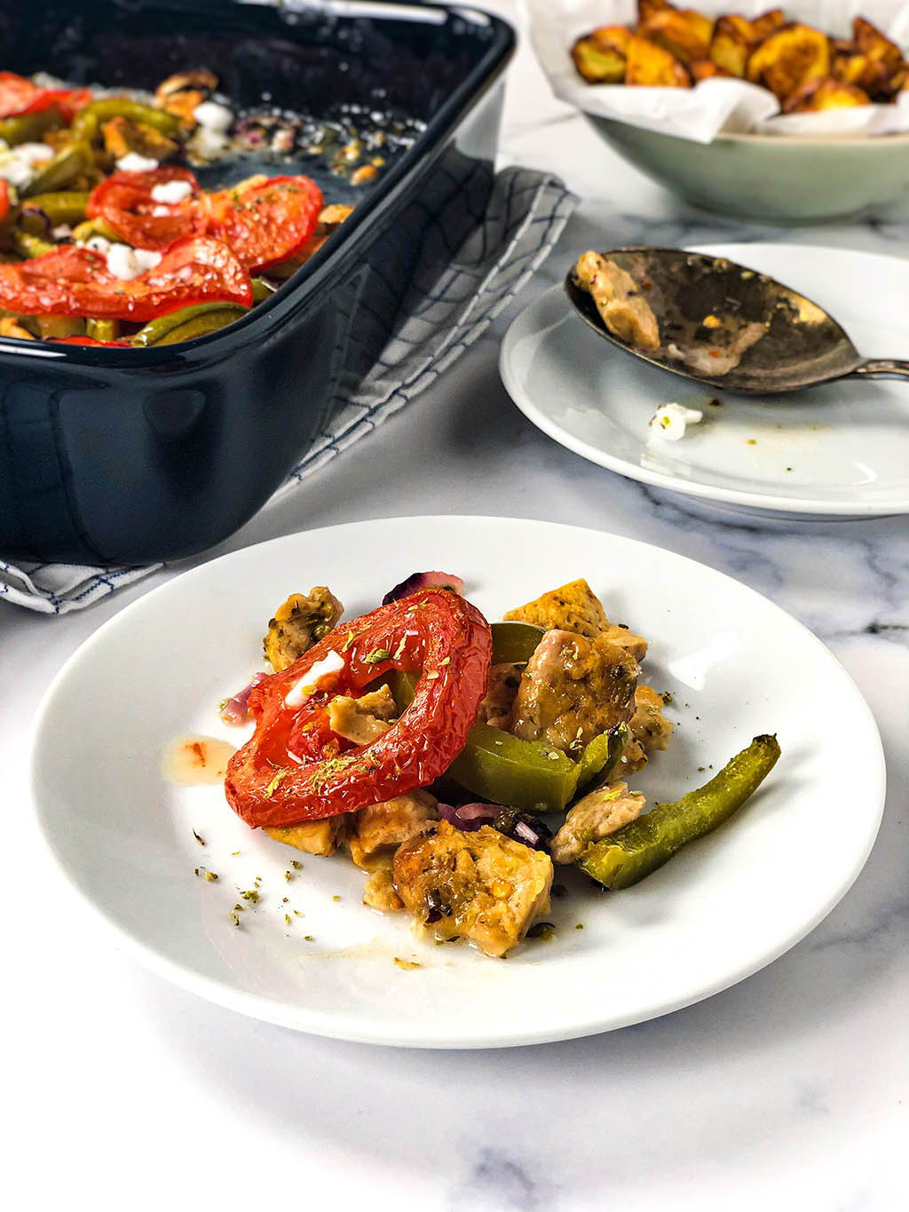 Vielleicht kennst du es, in Griechenland wird dir fast immer frisches Brot zu deinem Abendessen serviert. Wir sind echte Brotliebhaber, also stört uns das überhaupt nicht. Das Brot ist fast immer weiß und weich und in dicke Scheiben geschnitten. Du kannst also auch wunderbar Brot in diesen griechischen Auflauf eintauchen.
