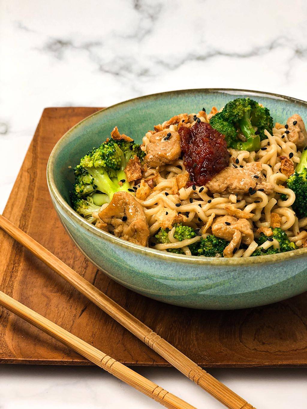 In diesem Gericht verwenden wir Ramen-Woknudeln. Du kannst aber natürlich auch andere Nudelsorten verwenden. Denke an Reisnudeln, Sobanudeln, Udonnudeln und beispielsweise Mienudeln. Einige Varianten gibt es auch in Vollkornversionen, falls du noch mehr Ballaststoffe hinzufügen möchtest. Deshalb ist dieses Gericht praktisch, denn du kannst selbst wählen, welche Nudelsorte du bevorzugst.