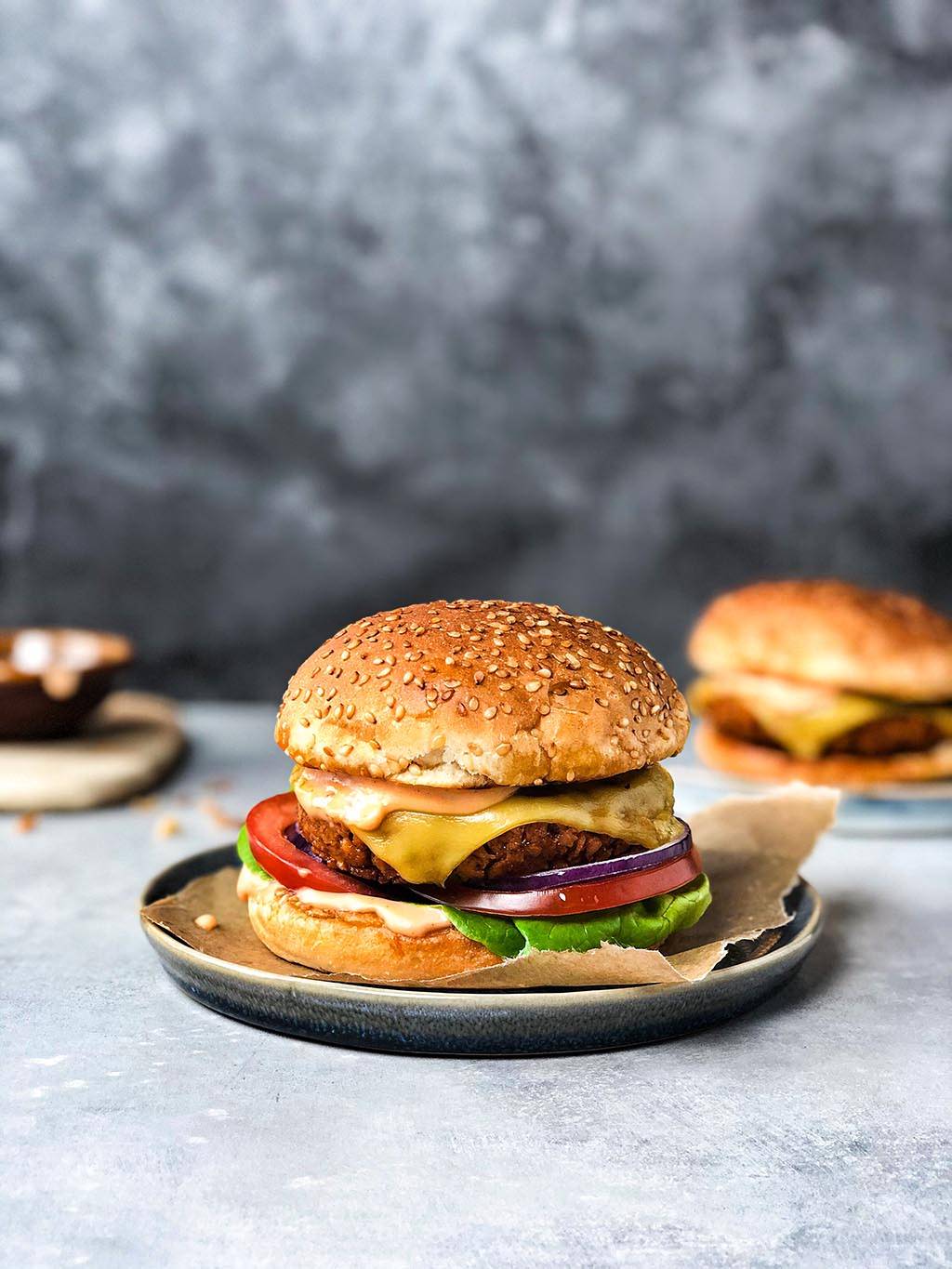 Dieser vegane Burger schmeckt nicht nur gut, sondern ist auch vollständig soja- und glutenfrei. Ja, lasst uns schnell mit diesem beliebten Junk-Food-Gericht beginnen. Aber natürlich auf eine viel gesündere Art und Weise!