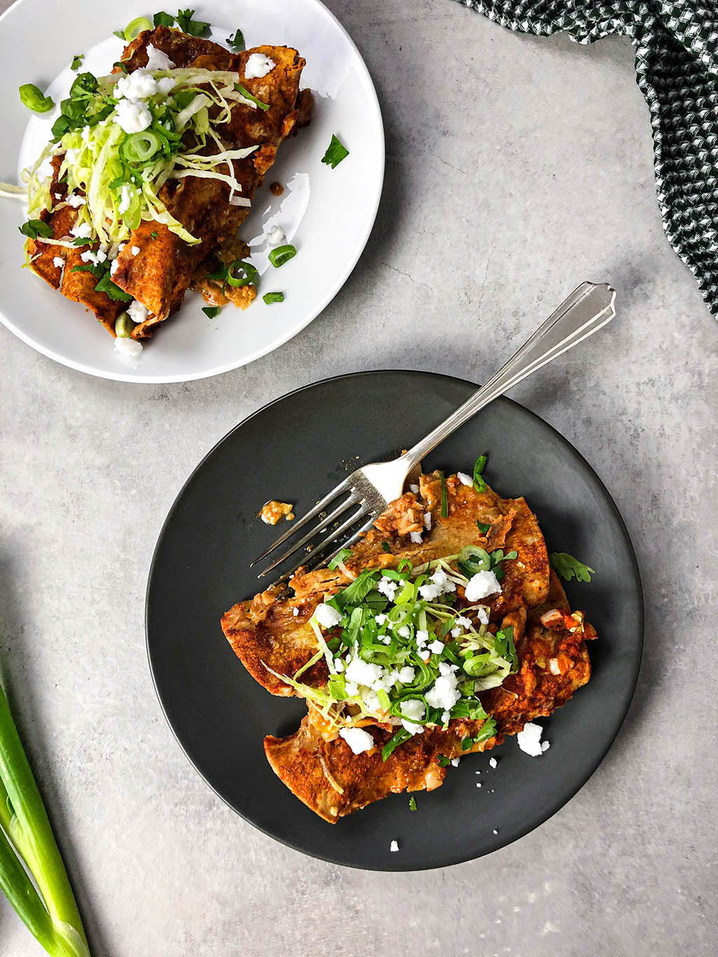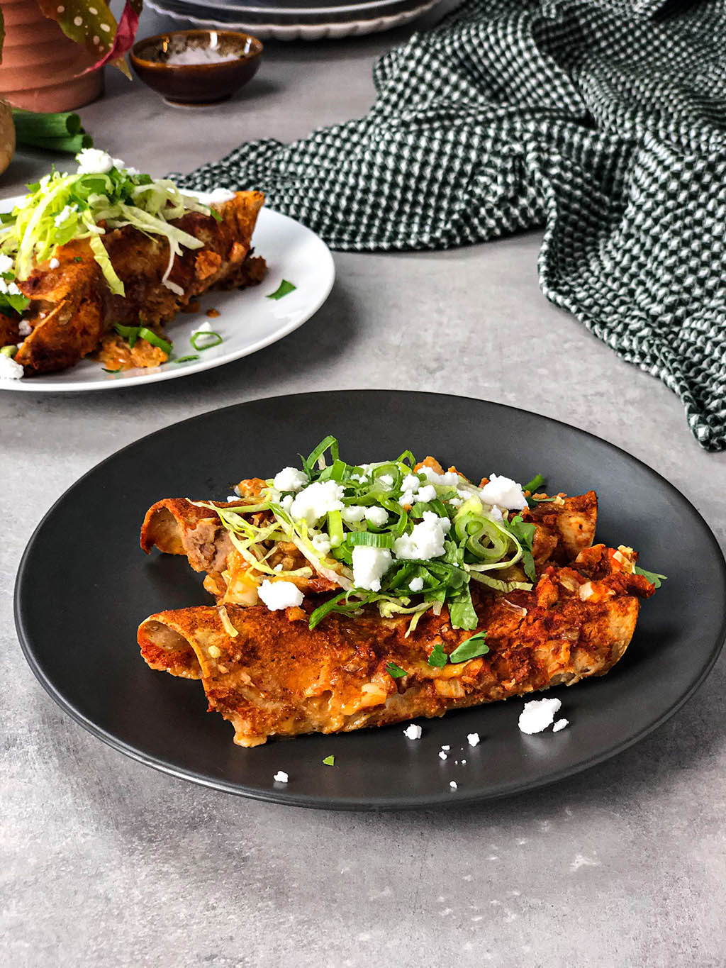 Wir garnieren diese veganen Enchiladas mit frischem Koriander, gehacktem Eisbergsalat, Frühlingszwiebeln und veganem Feta und servieren sie mit Reis und Bohnen. Wirklich eine köstliche Mahlzeit, die auch noch komplett soja- und glutenfrei ist. Wir sind gespannt, ob dieses Rezept auch zu deinem neuen Favoriten wird. Schon mal guten Appetit.