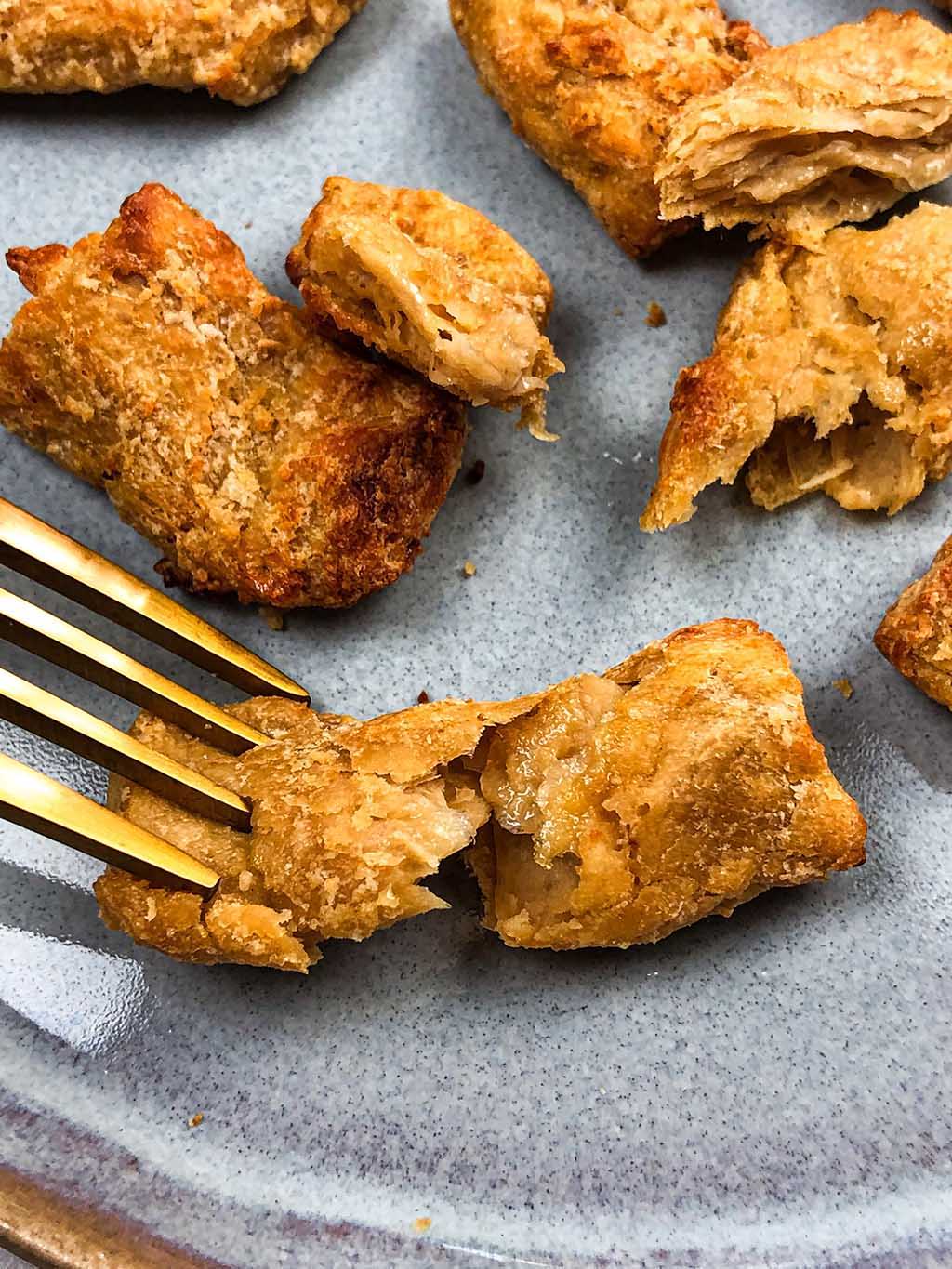 **Hast du keinen Airfryer? Kein Problem. Du kannst die veganen Hähnchenstücke auch problemlos in der Pfanne oder im Backofen braten. Lies dazu mehr im Text unten.
