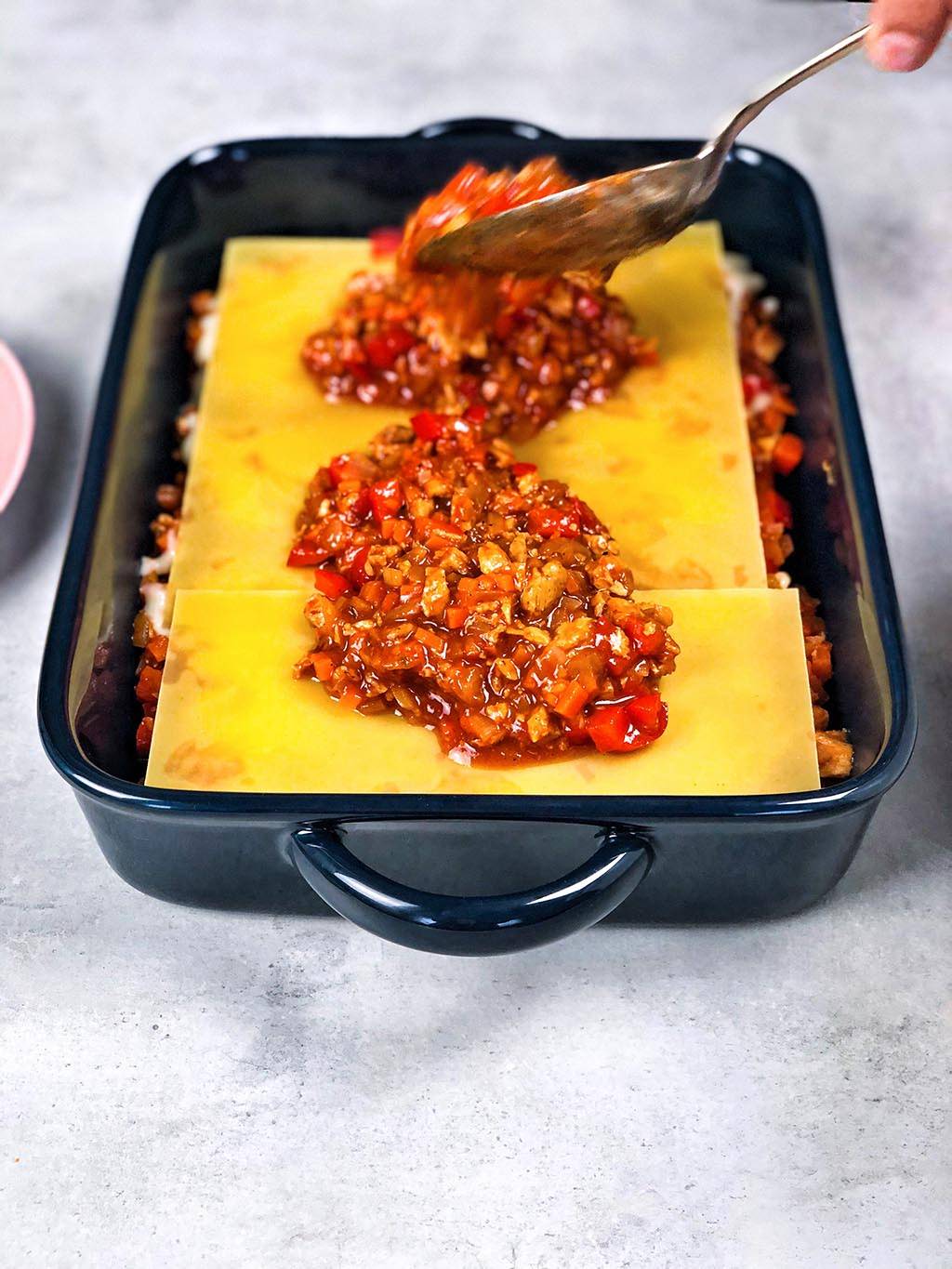 Es ist überhaupt nicht schwer, Lasagne vegan zuzubereiten. Es ist jedoch praktisch, ein gutes Grundrezept zu haben, dem du immer folgen kannst, um es dann nach eigenem Geschmack anzupassen. Du kannst die Füllung natürlich endlos variieren.