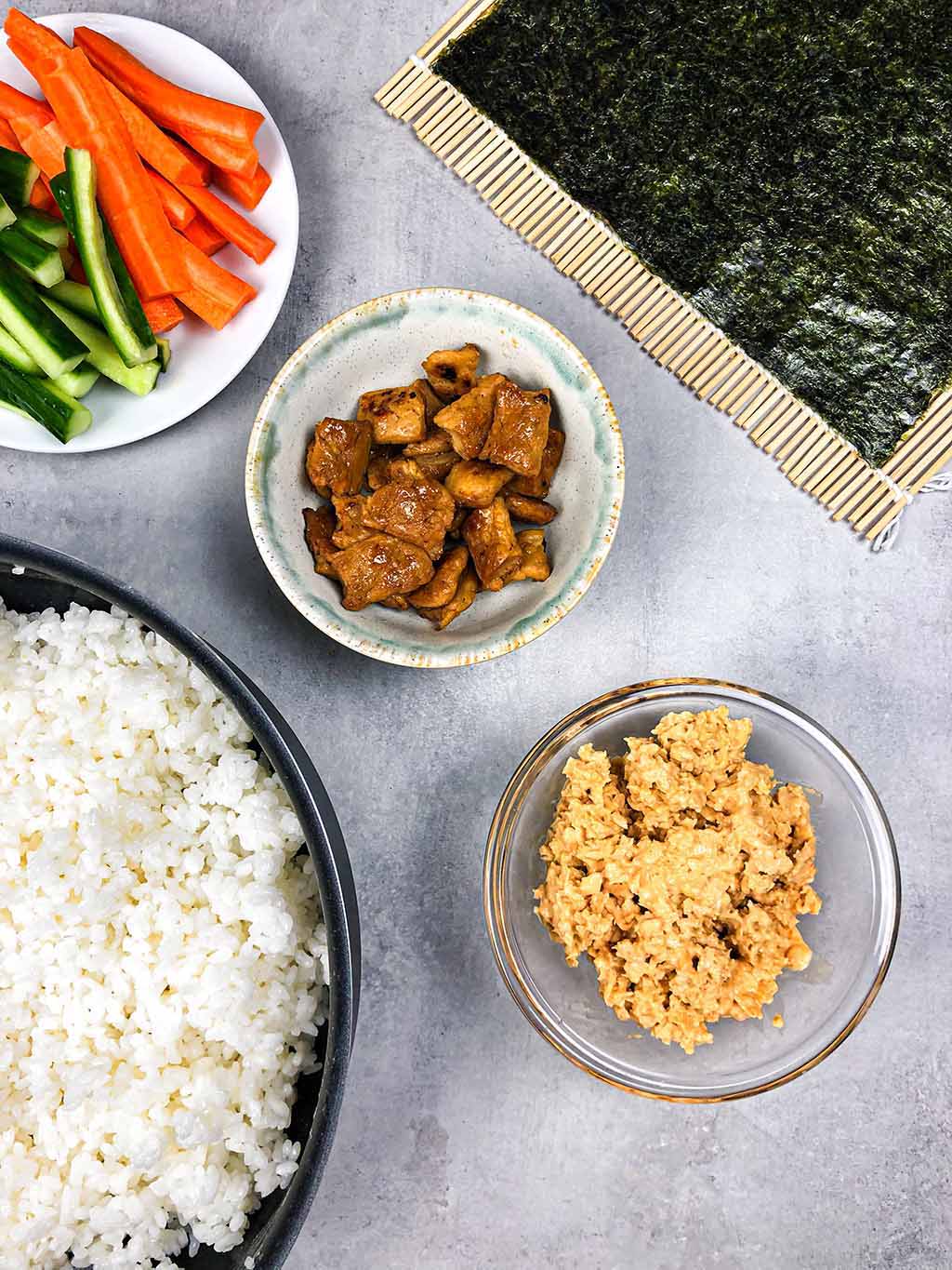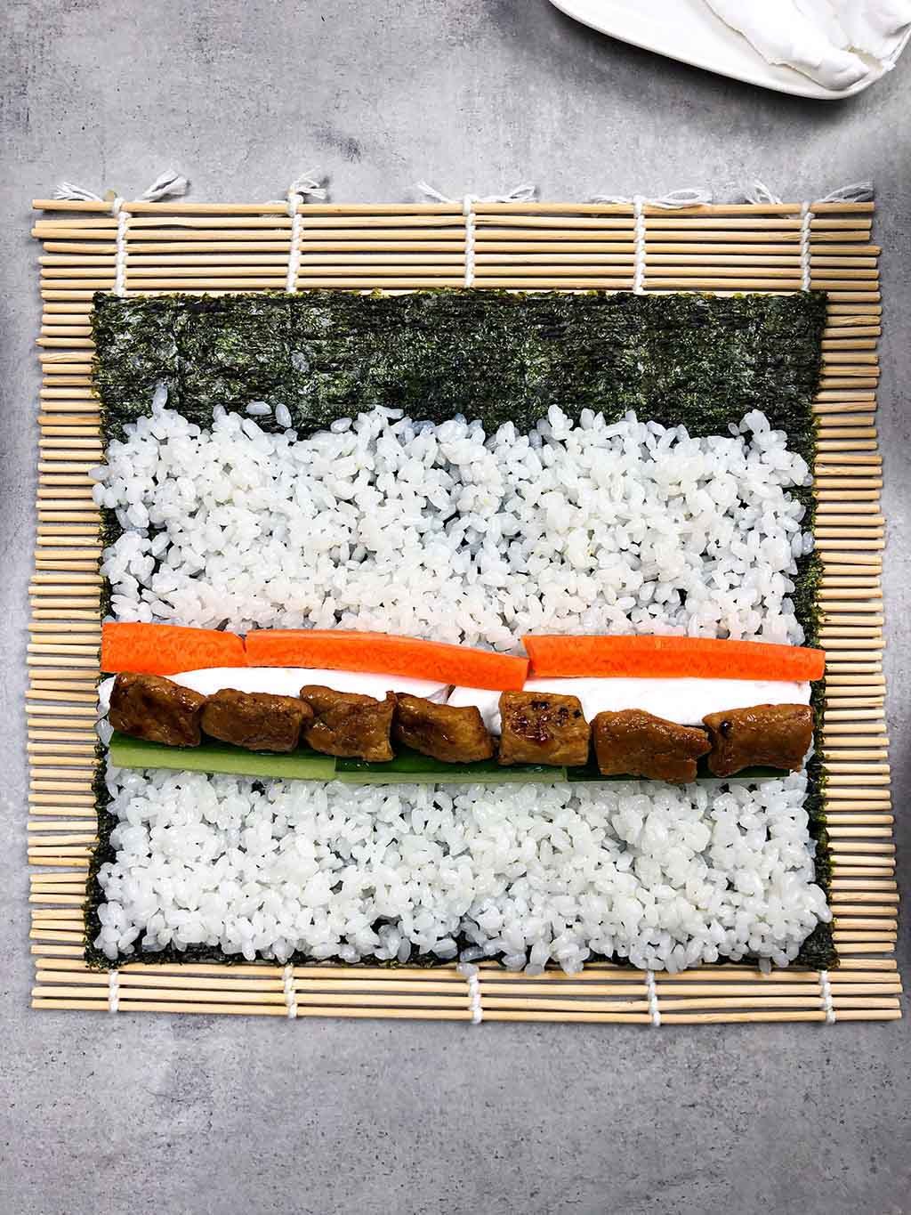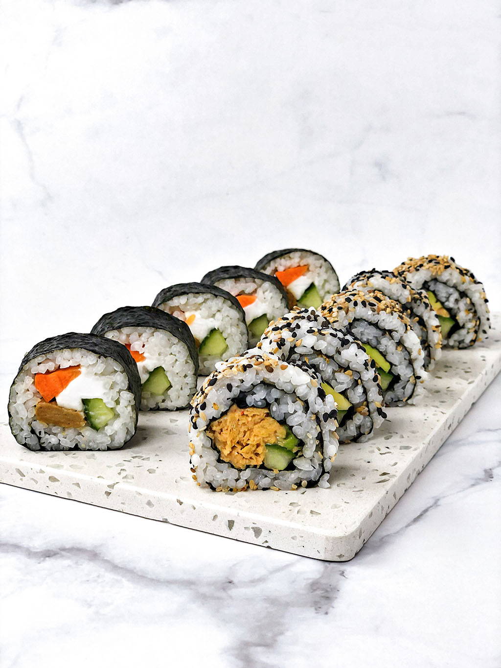 Du kannst veganes Sushi mit verschiedenen Gemüsefüllungen zubereiten, aber wir möchten das vegane Sushi wirklich besonders machen!