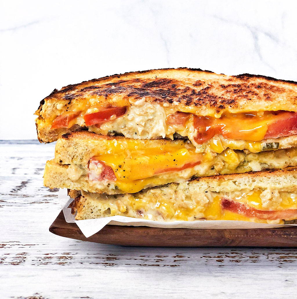 Man sagt, das Tuna Melt Sandwich sei in Amerika in South Carolina entstanden, als in einem Sandwichladen aus Versehen etwas Thunfischsalat auf ein mit geschmolzenem Käse überbackenes Brötchen verschüttet wurde. Ein leckerer Unfall! Es ist ein sehr starkes Sandwich, also kannst du es auch problemlos als Abendessen mit einer Suppe oder einem leckeren Salat essen. Wirklich zu empfehlen!