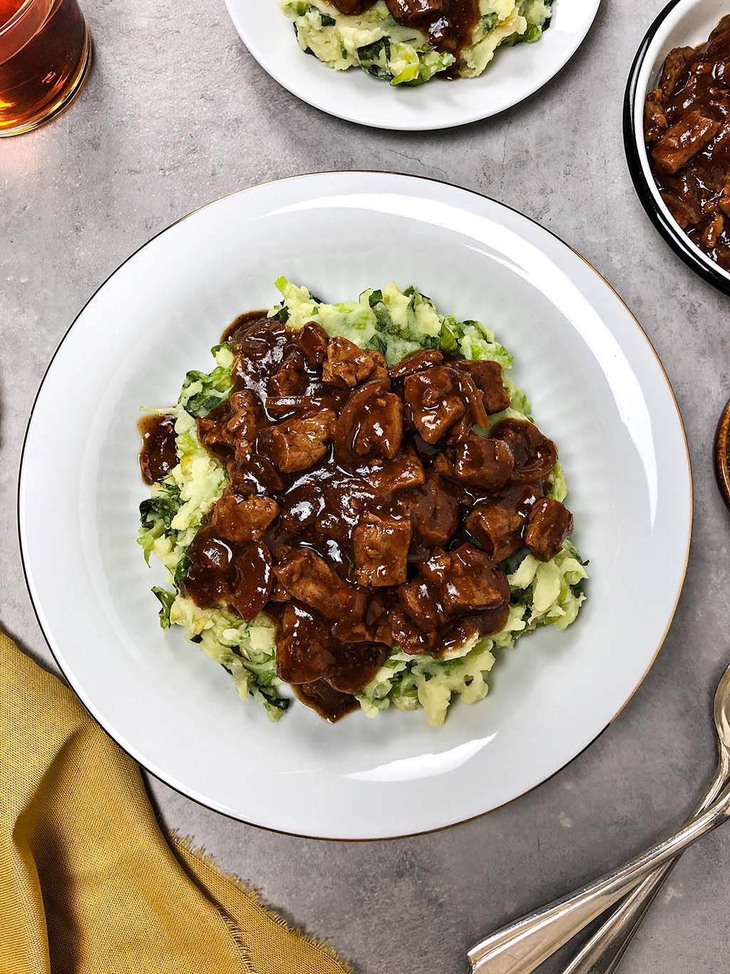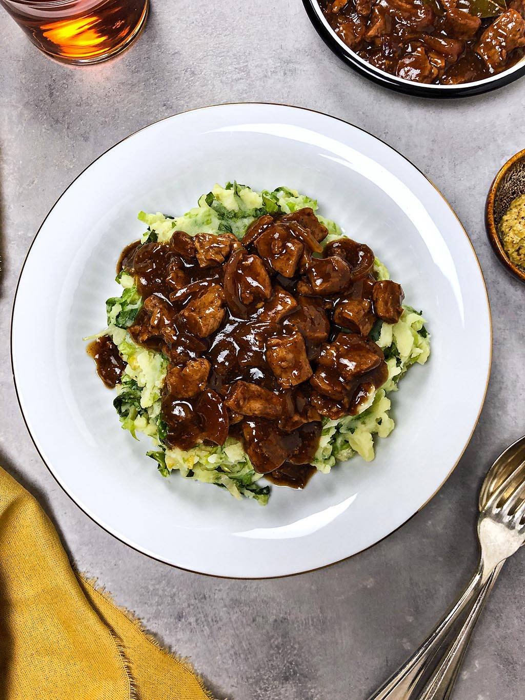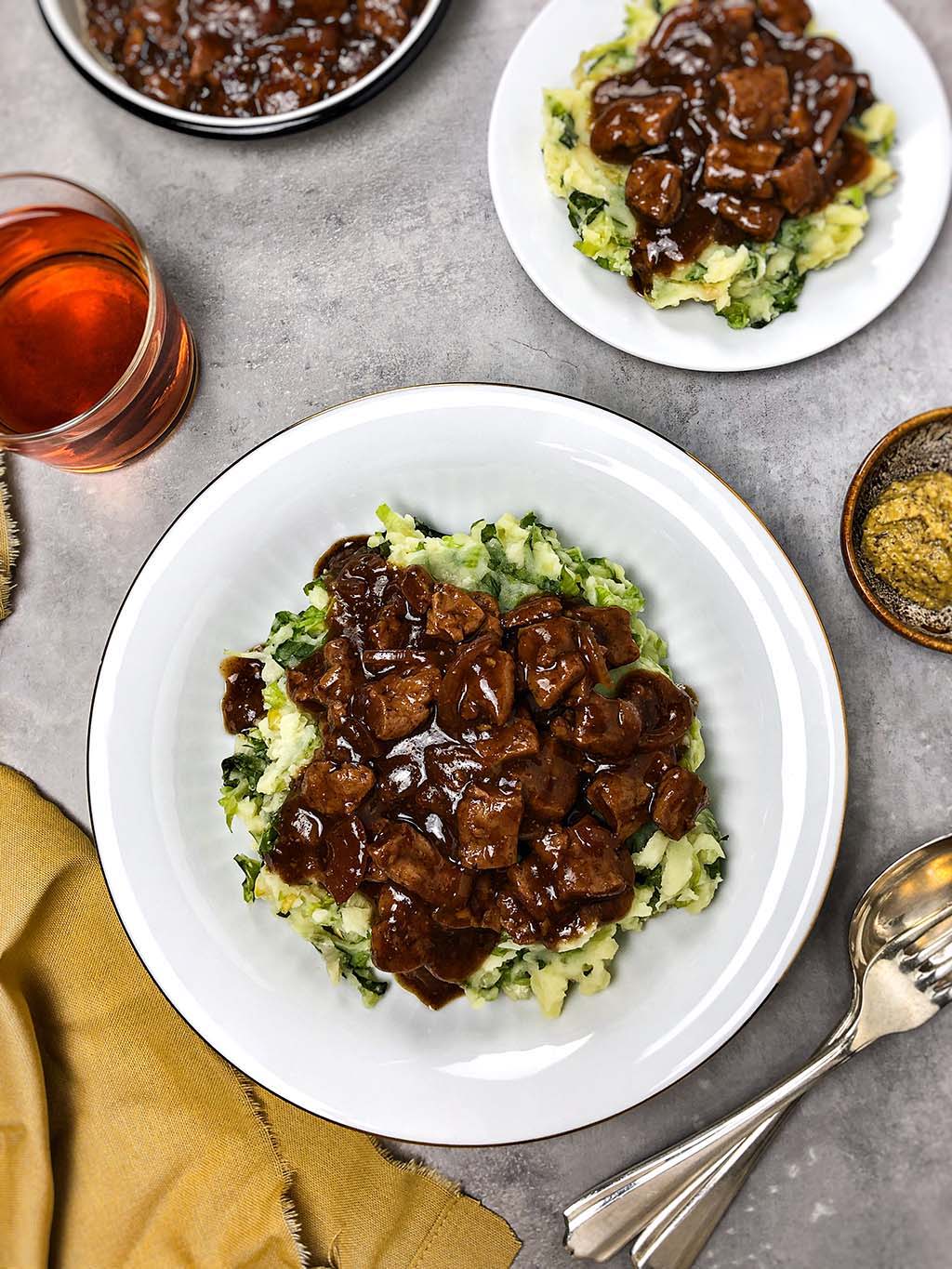 Übrigens, bist du auch so verrückt nach Senf? Dann ist die Kombination mit diesem veganen Haschée mit einem Stampf und einem Löffel groben Senfs wirklich lecker. Das ist natürlich völlig optional, aber unserer Meinung nach auf jeden Fall empfehlenswert.