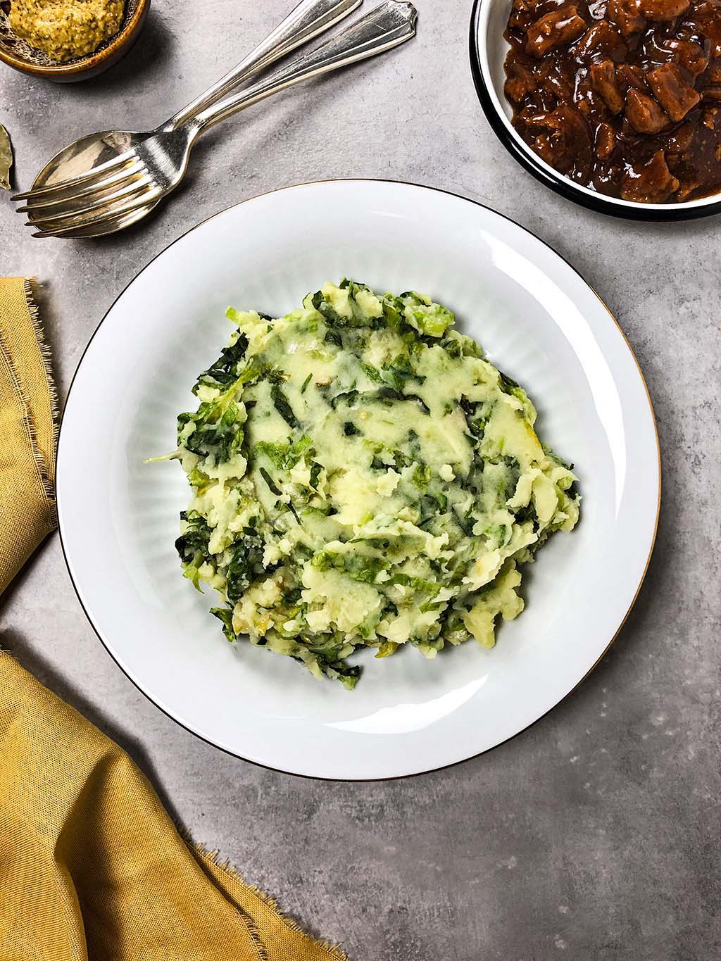 Wir essen dieses vegane Haschée gerne mit einem Stampf. Manchmal ist es ein Endiviensalatstampf, und manchmal ist es ein Möhren-Kartoffelstampf. Je nachdem, wonach uns der Sinn steht und welche Gemüsesorten gerade Saison haben.
