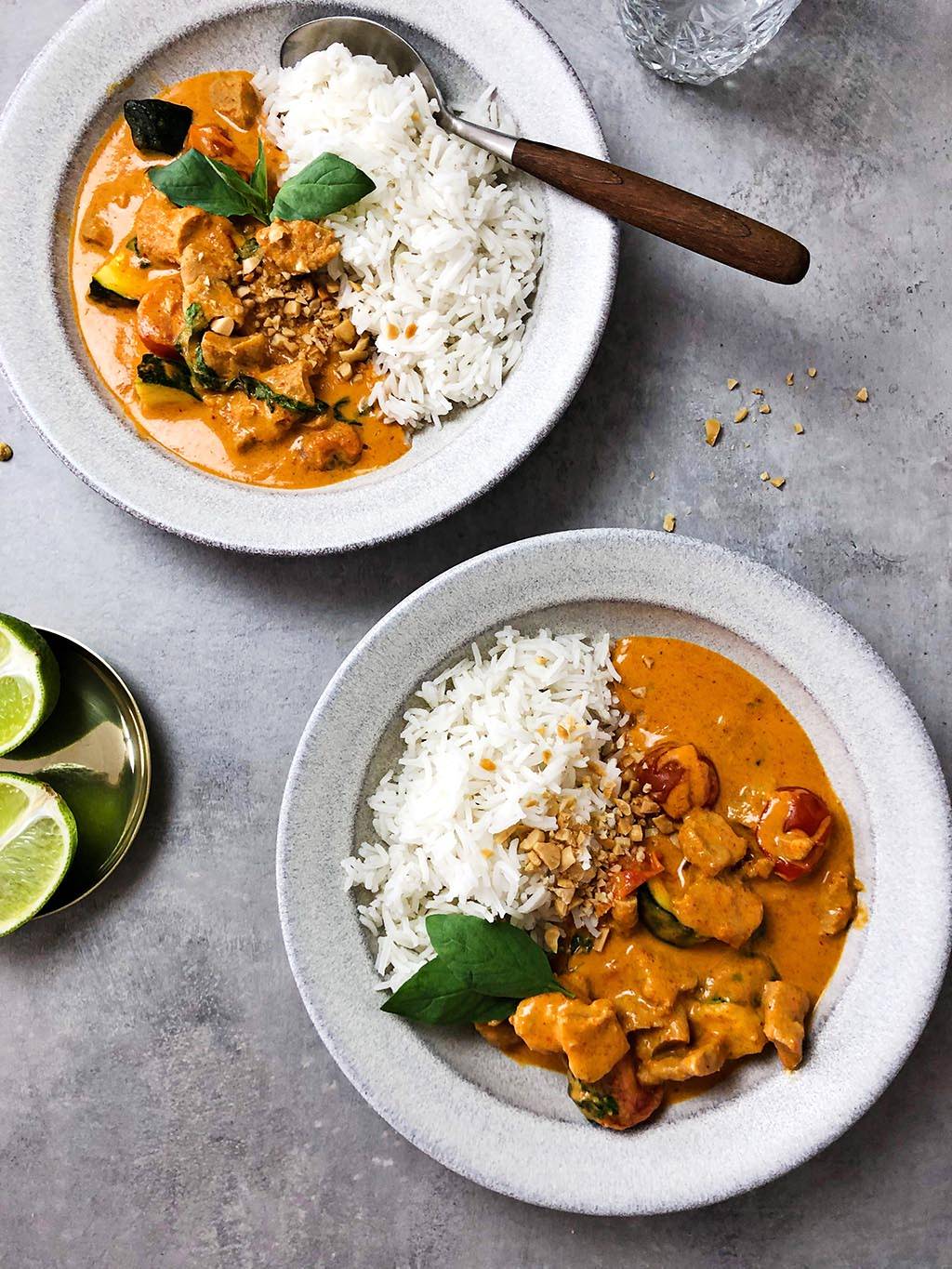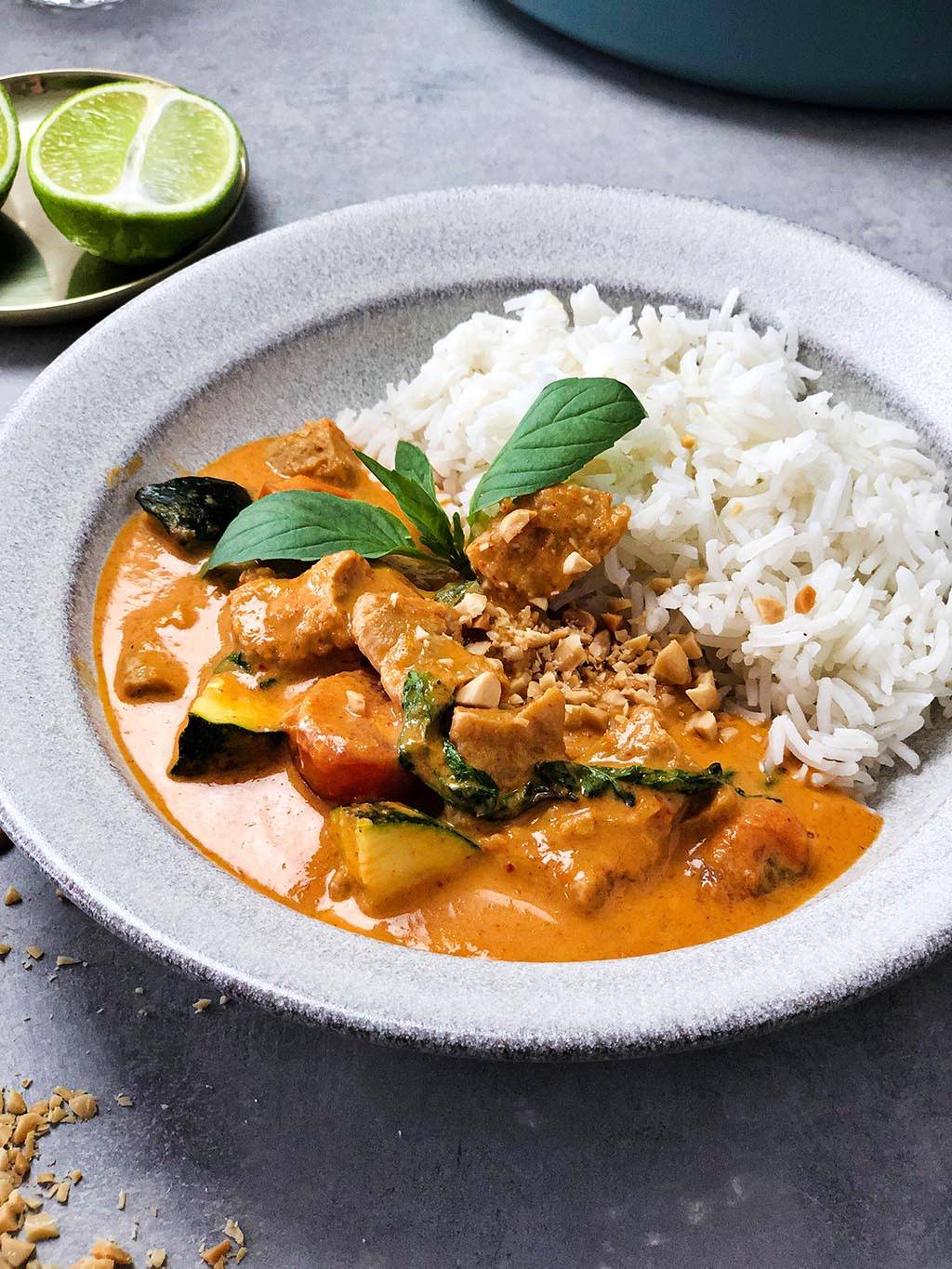Beachte: Wir haben die Panang Currypaste von Koh Thai verwendet. Wenn du dich für eine andere Marke entscheidest, kann es sein, dass die Geschmacksrichtungen nicht übereinstimmen. Einige können zum Beispiel schärfer, salziger oder würziger sein als andere. Es kann also sein, dass du weniger oder mehr verwenden musst, wenn du dich für eine andere Marke entscheidest.