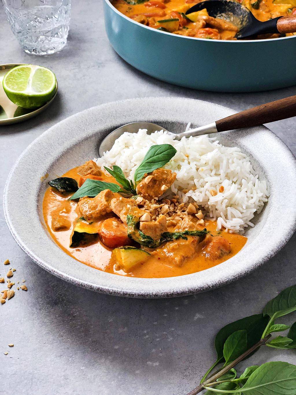 Wenn du dich dafür entscheidest, eine andere Currypaste zu verwenden, sei es eine andere Marke oder selbstgemacht, beachte, dass die Aromen dann etwas anders sein können. Probier während des Kochens immer mal wieder, damit die Aromen (süß, salzig, sauer und würzig) ausgewogen bleiben.